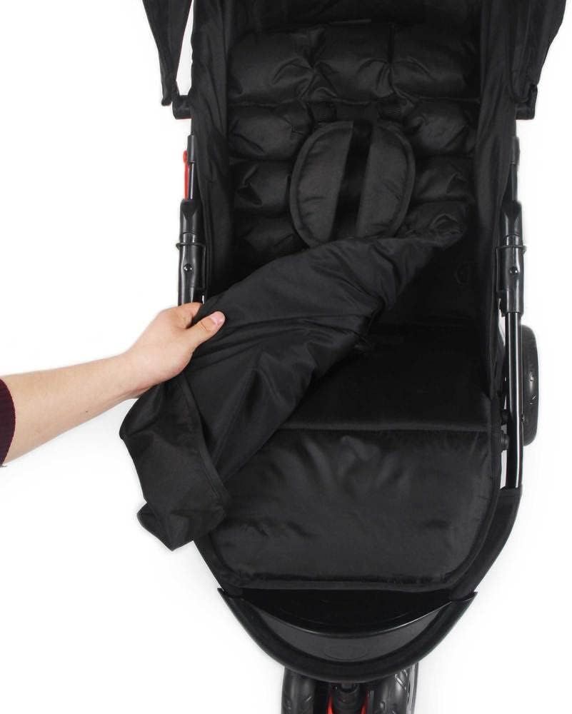 Confortável, o colchonete super acolchoado e macio pode ser removido quando for necessário lavar. A capota é ampla e com visor protegido por tela para ver o bebê durante o passeio. A manopla com formato inteiriço tem revestimento macio, aumentando o conforto para os pais. A roda dianteira dupla tem giro 360° para dirigir com facilidade e trava de movimento, além do freio nas rodas traseiras com acionamento único. Segurança garantida com cintos de 5 pontos para a criança, ajustáveis em altura e largura.